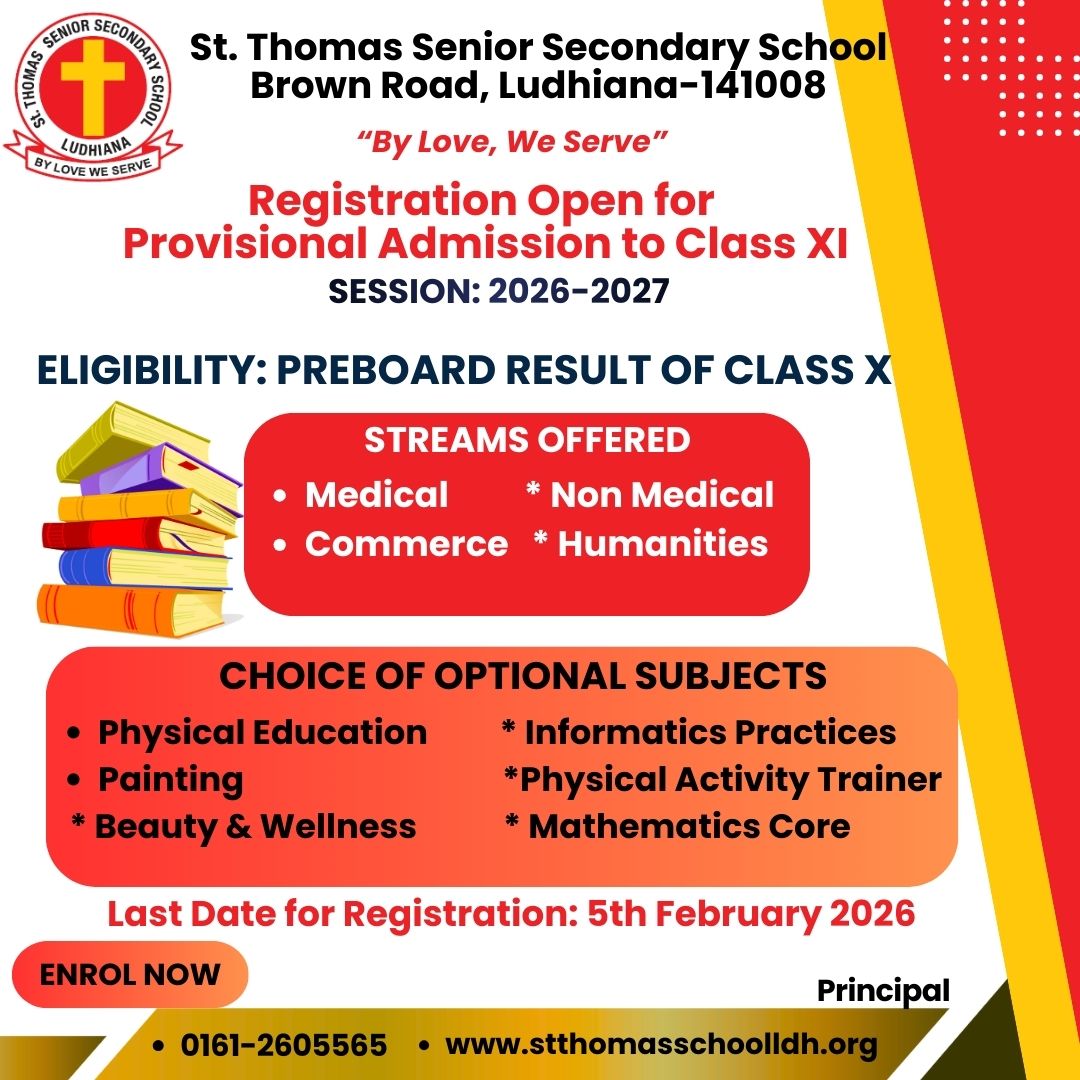 With the dawn of each New Year and the passing of each new day, we at the St. Thomas Senior Secondary School,Brown Road, Ludhiana, rededicate ourselves to our mission of carrying the ever radiating torch of education into the big Wide World.